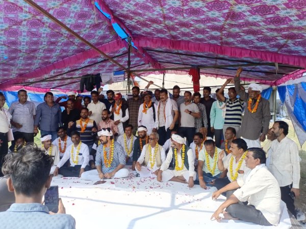 अनिश्चितकालीन धरने के चौथे दिन विधायक चेतन पटेल की किसानों सहित भूख हड़ताल।