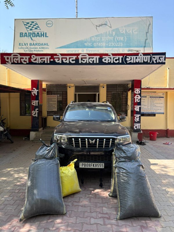 कोटा ग्रामीण नशे के सौदागरों के खिलाफ छिड़ी जंग में कोटा ग्रामीण पुलिस ने एक बार फिर अपनी मुस्तैदी का लोहा मनवाया है। 'ऑपरेशन रूट क्लीयरेंस' के तहत कार्रवाई करते हुए चेचट थाना पुलिस ने दिल्ली-मुंबई एक्सप्रेस-वे पर फिल्मी स्टाइल में घेराबंदी कर पंजाब के एक 'बंटी-बबली' जोड़े को गिरफ्तार किया है। लग्जरी स्कॉर्पियो कार में छिपाकर ले जाया जा रहा 78 किलो 90 ग्राम अवैध डोडा-चूरा बरामद किया गया है, जिसकी अंतरराष्ट्रीय बाजार में कीमत करीब 12 लाख रुपये आंकी गई है।