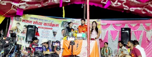 भजन संध्या में सुप्रसिद्ध बुंदेली भजन गायक अरविंद कुशवाहा, भजन गायिका दीक्षा भारती एवं ज्योति कुशवाहा ने सर्वप्रथम माता सरस्वती, भगवान श्री गणेश और श्री कारस देव की आराधना कर कार्यक्रम की शुरुआत की। इसके बाद देर रात तक भजनों की स्वर लहरियों ने वातावरण को भक्तिमय बनाए रखा।