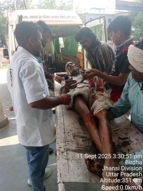 ललितपुर : गुरुवार दोपहर करीब 3 बजे के करीब पाली से डोंगरा कलाँ अपने भांजे चंद्रभान के साथ जा रहे थे कि अचानक सामने से आते तेज ट्रक के कारण मोटरसाइकिल का नियंत्रण बिगड़ गया जिससे उमरिया बमौरी तिराहे के पास अनियंत्रित होकर एक मोटरसाइकिल रोड पर लगी रेलिंग से टकरा गई जिससे एक वृद्ध व्यक्ति जिसका नाम फुंदी लाल उम्र करीब 65 वर्ष निवासी डोंगरा कलां गंभीर रूप से घायल हो गया जिसे 108 की मदद से तुरन्त ही नजदीकी सामुदायिक स्वास्थ्य केन्द्र बिरधा लाया गया ।हालत में सुधार ना होने पर जिला अस्पताल रेफर कर दिया गया ।जहाँ वृद्ध व्यक्ति का उपचार चल रहा है ।पुलिस ने मामले को जाँच कर दी है ।