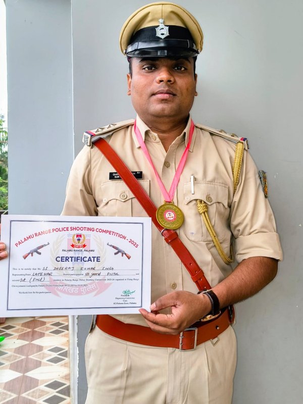 बरवाडी़ह : पलामू रेंज पुलिस शूटिंग प्रतियोगिता 2025-26 में लातेहार जिला का प्रतिनिधित्व करते हुए उपनिरीक्षक धीरज कुमार सिंह, जो छिपादोहर के पूर्व थाना प्रभारी रह चुके हैं, ने उत्कृष्ट प्रदर्शन करते हुए 50-यार्ड पिस्टल श्रेणी में प्रथम स्थान प्राप्त किया है,यह प्रतियोगिता पलामू जिला पुलिस के तत्वावधान में 09 से 10 अक्टूबर 2025 तक फायरिंग रेंज लेस्लीगंज में आयोजित की गई,इस अवसर पर पलामू रेंज के विभिन्न जिलों के पुलिस पदाधिकारियों ने अपनी प्रतिभा का प्रदर्शन किया। समापन समारोह में पुलिस महानिरीक्षक (पलामू क्षेत्र) शैलेश कुमार सिन्हा ने विजेताओं को सम्मानित किया और प्रतिभागियों को उनके उत्कृष्ट प्रदर्शन के लिए बधाई दी,उन्होंने कहा कि इस तरह की प्रतियोगिताएं पुलिसकर्मियों में अनुशासन, सटीकता और आत्मविश्वास को सशक्त करती हैं। प्रतियोगिता में सभी प्रतिभागियों को उनके योगदान और सहभागिता के लिए धन्यवाद दिया गया।