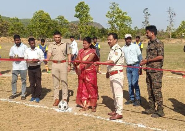 बालूमाथ : थाना क्षेत्र के रामघाट बारा मैदान में लातेहार पुलिस के तत्वावधान में सामुदायिक पुलिसिंग के तहत फुटबॉल मैच का आयोजन किया गया।कार्यक्रम के मुख्य अतिथि पुलिस अधीक्षक लातेहार कुमार गौरव थे। मैच का उद्घाटन मुख्य अतिथि कुमार गौरव तथा विशिष्ट अतिथि अनुमंडल पुलिस पदाधिकारी बालूमाथ विनोद र'वानी, बालूमाथ थाना प्रभारी अमरेंद्र कुमार एवं मुखिया मारंगलोइया सोनमणी देवी द्वारा संयुक्त रूप से फीता काटकर एवं नारियल फोड़कर किया गया। इस प्रतियोगिता में कुल 8 टीमों ने भाग लिया, जिनमें सरना क्लब बसिया, फुटबॉल क्लब भगिया, एससीजीसी टीम गणेशपुर, सरना संगम क्लब धाधू,आजाद क्लब शांति,न्यू 11 स्टार क्लब बारा, सरना स्पोर्टिंग क्लब मारंगलोइया तथा बालूमाथ थाना की टीम शामिल थीं। सभी टीमों के खिलाड़ियों ने पूरे जोश और उत्साह के साथ शानदार प्रदर्शन किया। कार्यक्रम में पुलिस अधीक्षक कुमार गौरव, अनुमंडल पुलिस पदाधिकारी विनोद र'वानी, थाना प्रभारी अमरेंद्र कुमार, मुखिया मारंगलोइया, सब इंस्पेक्टर देवेंद्र कुमार, गौतम कुमार समेत मनदीप कुमार, दिलीप भगत सहित खिलाड़ी एवं दर्शक उपस्थित रहे। मैच का संचालन और कमेंट्री विनोद कुमार एवं मनदीप कुमार द्वारा किया गया।