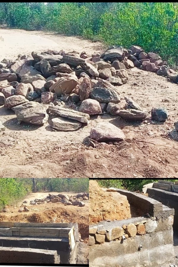 लावालौंग में वन विभाग के द्वारा पुलिया निर्माण में जंगल के पत्थरों को खपाई जा रही है