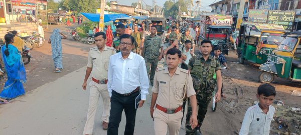 लेस्लीगंज में दुर्गा पूजा को लेकर फ्लैग मार्च