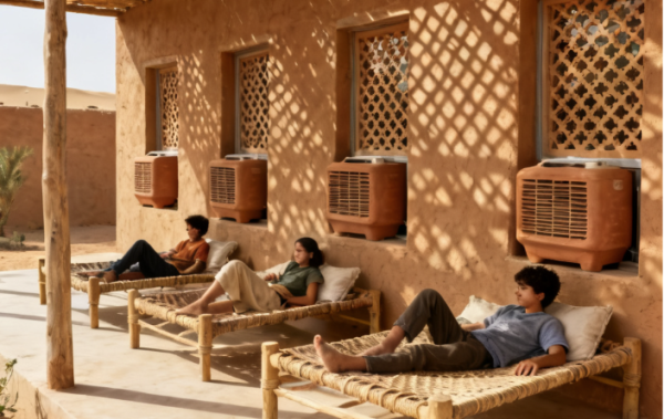 यानी बिना किसी मशीन के, सिर्फ प्रकृति के जरिए “कूलिंग इफेक्ट” तैयार किया जाता है।