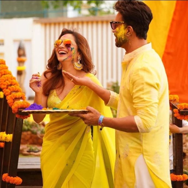 पिछले साल होली पर अंकिता लोखंडे पीले रंग के इस आउटफिट से सबका ध्यान अपनी तरफ खीच लिया। अगर इस होली पर अगर आपका पार्टनर भी आपके साथ इस पार्टी में जा रहा है, तो आप एक्ट्रेस अंकिता लोखंडे और उनके हसबैंड विक्की जैन ने यलो कलर का मैचिंग आउटफिट जैसा लुक का चुनाव करना चाहिए. आप अपने पार्टनर के साथ ट्यूनिंग करके बहुत ही खूबसूरत दिख सकती है।