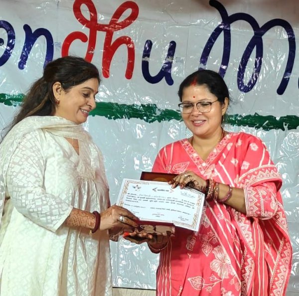 सामाजिक कार्यों तथा बेसिक शिक्षा परिषद के विद्यालयों की अवसंरचना सुधार हेतु "बंधु महल" ने शिक्षिका रीना त्रिपाठी को किया सम्मानित