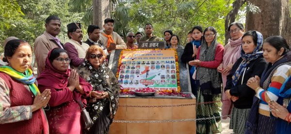 लखनऊ : एक समाज श्रेष्ठ समाज संस्था अध्यक्ष योगेन्द्र कुमार साहू मार्गदर्शक रोहतास प्रजापति के नेतृत्व में संस्था के माध्यम से 14 फरवरी 2019 को जम्मू कश्मीर के पुलवामा में पाकिस्तानी आतंकी हमले में भारतीय सेना के शहीद जवानों की सातवीं पुण्यतिथि पर संस्था पदाधिकारियों ने हल्द्वानी रामलीला मैदान स्थित डीके पार्क में पुलवामा के शहीदों को पुष्पांजलि अर्पित कर श्रद्धांजलि दी। इस दौरान एक समाज श्रेष्ठ समाज संस्था मार्गदर्शक मीना जोशी सदस्य शांति रावत ने संयुक्त रूप से कहा की जम्मू कश्मीर के पुलवामा में पाकिस्तानी आतंकी हमले में शहीद भारतीय सेना के जवानों के बलिदान को कभी भी भुलाया नहीं जा सकता है क्योंकि भारतीय सेना के जवान अपनी जान की परवाह न करते हुए भारत एवं भारतवासियों को हमेशा सुरक्षित रखते है क्योंकि भारतीय सेना के जवान हजारों फुट की ऊंचाई पर अपनी हड्डियाँ गलाकर दुश्मनों की हर हरकत पर पैनी निगाह रखते हुए दुश्मनों को मुंहतोड़ जवाब देकर दुश्मनों को संभलने तक का मौका भी नहीं देते है तब जाकर हम अपने घरों में सुरक्षित रहते है और तब हम अपने सारे त्योहारों को हर्ष उल्लास पूरी खुशी के साथ भयमुक्त होकर मना पाते है इसलिए भारतीय सेना के शहीद जवानों के बलिदान को कभी भी भुलाया नहीं जा सकता इसीलिए एक समाज श्रेष्ठ समाज संस्था पुलवामा के शहीदों की सातवीं पुण्यतिथि पर शहीदों को पुष्पांजलि अर्पित कर श्रद्धांजलि देकर उनके प्रति श्रद्धा भाव प्रकट कर उनके बलिदान को हमेशा याद रखती है और यह हम सभी भारतीयों का परम कर्तव्य है। इस दौरान पुलवामा के शहीदों को श्रद्धांजलि देने में संस्था अध्यक्ष योगेन्द्र कुमार साहू संरक्षक रुपेन्द्र नागर सचिव नन्दकिशोर आर्या मार्गदर्शक मीना जोशी तरुण सक्सेना वीरेंद्र जायसवाल पीयूष शर्मा राजेश साहू रोहतास प्रजापति सुनीता तिवारी शांति रावत ममता खत्री रेनू कांडपाल निशा वैला योगिता बनोला लीला भंडारी हेमा कार्की मोनिका आर्या तारा टकवाल शर्मिला मित्रा मीरा श्रोत्रिय कुसुम बोरा तारा पाण्डेय विजय लता योगेश कश्यप नन्दकिशोर आर्या रवि गुप्ता विजय गोस्वामी आयुष साहू यश गुप्ता सूरज मिस्त्री संदीप यादव संजीत सिन्हा वंश गुप्ता लक्ष्मी नारायण जानकी कश्यप एकता पाण्डेय माही बिष्ट मुकेश साहू दीपक कुमार अमित गोस्वामी सूरज कुम्हार मुकेश कुमार आदि लोग उपस्थित रहे।