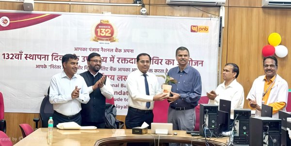 पंजाब नेशनल बैंक के 132वें स्थापना दिवस पर बृहद रक्तदान शिविर का आयोजन