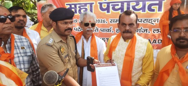 लखनऊ - हजरतगंज में 'लव जिहाद के खिलाफ महापंचायत का महाजुटान, पटेल प्रतिमा पर गूंजी हजारों की आवाज कडे कानून की उठी मांग राजधानी लखनऊ के व्यस्ततम और प्रतिष्ठित क्षेत्र हजरतगंज स्थित पटेल प्रतिमा पर आज एक अभूतपूर्व जनसमूह देखने को मिला जब हिन्दू बेटी बचाओ संघर्ष मोर्चा के तत्वाधान में "एक युद्ध लव जिहाद के विरुद्ध महापंचायत का आयोजन किया गया। इस महापंचायत में हजारों की संख्या में लोगों की उपस्थिति ने इसे एक बड़े सामाजिक आयोजन का रूप दे दिया। चारों ओर जागरूकता के संदेश बैनर और शांतिपूर्ण नारों के बीच यह कार्यक्रम अनुशासन और संयम के साथ संपन्न हुआ। गौचर्चा में अपनी मागों के संबंध में जिलाधिकारी के माध्यम से माननीय मुख्यमुत्री, उत्तर प्रदेश शासन को एक ज्ञापन भी दिया। कार्यक्रम स्थल पर सुबह से ही लोगों का आना शुरू हो गया था। धीरे-धीरे यह संख्या हजारों में बदल गई, जिसमें गुवाओं, महिलाओं और बुजुर्गों की उल्लेखनीय भागीदारी देखने को मिली। यह महापंचायत केवल एक विरोध या प्रदर्शन नहीं बल्कि सामाजिक सिंचन और जागरूकता का मंच बनकर उभरी, जहां लोगों ने एकजुट होकर अपनी बात रखी। प्रांत कार्यक्रम संयोजक अनुराग शुक्ला ने अपने संबोधन में कहा कि समाज की बेटियों की सुरक्षा और सम्मान सर्वोच्च प्राथमिकता होनी चाहिए। उन्होंने सरकार और प्रशासन से आग्रह किया कि लव जिहाद के मामलों में सकारात्मक और प्रभावी कदम उठाए जाएं, ताकि समाज में विश्वास और सुरक्षा का वातावरण मजबूत हो सके। उन्होंने यह भी कहा कि वर्तमान समय में लव जिहाद के मामलों के लिए ठोस और व्यवस्थित नीति बनाना अत्यंत आवश्यक है। इस दौरान महापंचायत में फास्ट ट्रैक कोर्ट की स्थापना की प्रमुख मांग रखी गई, जिससे इस प्रकार के मामलों में त्वरित नाय सुनिश्चित किया जा सके। साथ ही, सख्त और प्रभावी कानून लागू करने की आवश्यकता पर भी जोर दिया गया। अनुराग शुक्ला ने सुझाव दिया कि विवाह जैसे महत्वपूर्ण निर्णयों में मात-पिता की सहमति की मी एक महत्वपूर्ण पहलू के रूप में देखा जाना चाहिए, जिससे सामाजिक संतुलन और पारिवारिक संरचना को मजबूती मिल सके। कार्यक्रम की एक विशेषता यह रही कि इसमें विभिन्न समाजों के प्रतिनिधियों ने सक्रिय भागीदारी निभाई। ब्राह्मण, क्षत्रिय, वैश्य सहित विभिन्न वर्गों के लोगों ने नंथ साझा करते हुए सामाजिक एकता और समरसता का संदेश दिया। वक्ताओं ने इसे एक जागरूकता अभियान बताते हुए कहा कि समाज को सजग, संगठित और जागरूक रहना अत्यंत आवश्यक है। महापंयायत के दौरान अन्य प्रमुख वक्ताओं ने भी अपने विचार रखे। संभव है। विजय बहादुर सिंह ने कहा कि समाज को इस विषय पर गंभीरता से विचार करते हुए एकजुट रहना होगा, तभी सकारात्मक परिवर्तन बाबू भाई मि