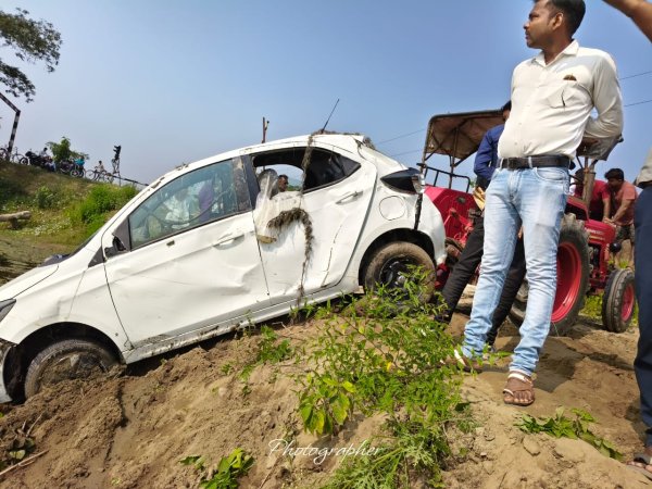 गुरली रामगढ़वा के पास अनियंत्रित कार पोखरी में गिरी, सभी सुरक्षित