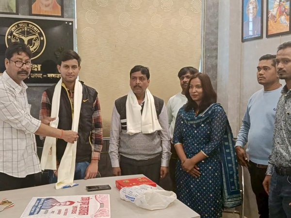 महाराजगंज : आदर्श नगर पंचायत बृजमनगंज वार्ड नंबर 7 निवासी बद्री नारायण उर्फ मुन्नू जायसवाल के पुत्र आदित्य जायसवाल का उत्तर प्रदेश ग्रामीण बैंक में पीओ (शाखा प्रबंधक) पद पर हुआ चयन। आदित्य जायसवाल की इस सफलता पर उनके परिवार सहित नगर पंचायत में खुशी की लहर दौड़ गई है। क्षेत्र के जन प्रतिनिधि बधाई दे रहे हैं आदित्य जयसवाल के पिता बद्री जायसवाल ने बताया बच्चों को पढ़ाने के लिए कड़ी मेहनत और संस्कार दोनों जरूरी हैं । आदित्य ने सारा श्रेय अपने माता-पिता को दिया जिन्होंने विषम परिस्थितियों में भी अपने बच्चों को पढ़ाया जिसका परिणाम उनके सामने है।आदित्य के पिता बद्री नारायण उर्फ मुन्नू जायसवाल ने कहा कि आज हमारे बेटे ने हमारे सर को गर्व से ऊंचा कर दिया। मुझे गर्व है अपने बेटे पर। आज नगर पंचायत कार्यालय पर अध्यक्ष राकेश जयसवाल एवं प्रशासनिक अधिकारी सुरभि मिश्रा ने ग्रामीण बैंक में चयनित आदित्य जयसवाल एवं उनके पिता बद्री नारायण को अंग वस्त्र भेंट कर नगर अध्यक्ष द्वारा मेडल पहनाकर मिठाई खिलाकर उसके उज्जवल भविष्य की बधाई दिया इसी क्रम में समाजसेवी एवं पत्रकार सौरभ जयसवाल ने अपने कार्यालय पर नगर अध्यक्ष राकेश जायसवाल के साथ आदित्य जयसवाल को अंग वस्त्र एवं गिफ्ट प्रदान कर ढेर सारी शुभकामनाएं दी l यह दौरान सभासद धर्मेंद्र चौरसिया, अनिल मणि त्रिपाठी, संतोष जायसवाल,विमल जायसवाल दिनेश जायसवाल ,शंकर दयाल कसौधन, झिनक चौधरी, गौरव जयसवाल, जगदंबा जायसवाल दीपक विश्वकर्मा सहित अनेक लोग मौजूद रहे l