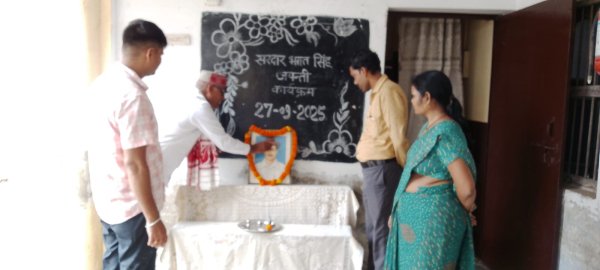 मीरजापुर : दी बोस पब्लिक स्कूल के प्रबंधक अमरेन्द्र शर्मा द्वारा शहीद - ए - आजम सरदार भगत सिंह जी के जन्मदिन के मौके पर एक गोष्ठी आयोजित कर शाहिद भगत सिंह की 118 वीं जयंती मनाई गई। सर्व प्रथम विद्यालय के वरिष्ठ अध्यापक रमेश सिंह दीप प्रज्वलित कर सरदार भगत सिंह जी के फोटो फ्रेम पर तिलक किए और पुष्प अर्पित कर उपस्थित विद्यार्थियों एवं अध्यापकों को जन्मदिन की बधाई दिए। तत्पश्चात रमेश सिंह ने बच्चों को संबोधित करते हुए भगत सिंह के बारे में बताया कि सरदार भगत सिंह का जन्म 27 सितंबर 1907 में पश्चिमी पंजाब के लायलपुर के बंगा नमक गांव( अब फैसलाबाद पाकिस्तान) में हुआ था। इनके पिता किसन सिंह और माता विद्यावती थी। भगत सिंह बचपन से ही क्रांतिकारी स्वभाव के थे। अंग्रेजों के खिलाफ लड़ने की इच्छा उनके दादा, पिता, और चाचाओं को स्वतंत्रता संग्राम में भागीदारी से प्रेरित था।