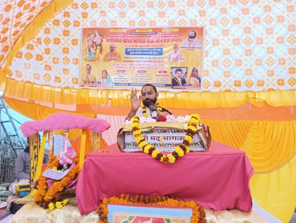 मीरजापुर : हलिया विकास खंड क्षेत्र के बबुरा कलां गांव में आयोजित श्रीमद्भागवत कथा के दूसरे दिन बुधवार को श्रीधाम वृंदावन से पधारे कथावाचक पंडित प्रेम मूर्ति महराज ने भागवत कथा की महिमा और शुकदेव और राजा परीक्षित की कथा का भक्तों को रसपान कराया। कथावाचक ने कहा कि जो व्यक्ति नित्य परायण होकर लगातार सात दिनों तक श्रीमद्भागवत की कथा श्रद्धा पूर्वक श्रवण करता है, वह जीवन के सभी पापों से मुक्त होकर भगवान की परम भक्ति को प्राप्त करता है।राजा परीक्षित भागवत कथा का श्रवण करने के कारण भगवान के परमधाम को प्राप्त हुए।कथावाचक ने कहा कि भागवत कथा का श्रवण करने से शोक और मृत्यु का भय समाप्त हो जाता है। मनुष्य के सभी पापों का नाश हो जाता है।कहा कि पृथ्वी पर अधर्म का नाश करने के लिए भगवान अवतरित होते हैं और आसुरी शक्तियों का विनाश कर धर्म की रक्षा करते हैं।कथा व्यास ने कहा कि मनुष्य को अपने प्रारब्धों को भोगना पड़ता है।कथा के अंत में श्रीमद्भागवत महापुराण व भगवान श्रीकृष्ण की आरती उतारी गई और भक्तों में प्रसाद वितरित किया गया।कथा यजमान इन्द्रकली मिश्रा, ओमप्रकाश मिश्र शांती देवी, कुल गुरू पंडित लवलेश त्रिपाठी, अंकित त्रिपाठी,आनंद नाथ मिश्र, सूर्य प्रकाश मिश्र, हरिशंकर मिश्र, नर्वदा प्रसाद मिश्र, राजेंद्र प्रसाद मिश्र, रामेश्वर प्रसाद मिश्र, शशिदेव मिश्र, श्याम बहादुर सिंह,दिलीप दुबे आशीष मिश्रा, सतीश मिश्र, कृष्ण दत्त मिश्र, रविशंकर तिवारी डा॰रमाकांत मिश्र,मदनेश मिश्र,विजय प्रताप सिंह,अमित सिंह जगलाल मौर्य सहित सैकड़ों श्रोताओं ने कथा का श्रवण किया।