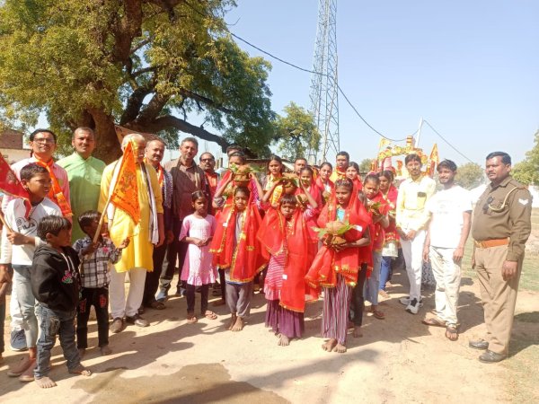 श्रीराम कथा के लिए गाजे बाजे के साथ निकाली गई कलशयात्रा
