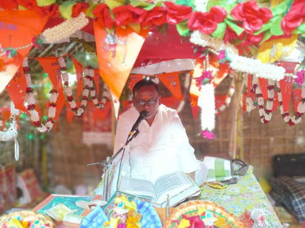 मिर्जापुर : ड्रमंडगंज क्षेत्र के मड़वा धनावल गांव में आयोजित श्रीमद्भागवत कथा के पांचवें दिन मंगलवार को अंबेडकर नगर से पधारे कथा वाचक पंडित विजय कुमार शास्त्री ने उद्धव गोपी संवाद, भगवान कृष्ण और रूक्मिणी विवाह का भक्तों को रसपान कराया। कथावाचक ने कहा कि भगवान निराकार हैं और सभी जगह विद्यमान हैं। भगवान श्रीकृष्ण ज्ञान के साथ प्रेम व भक्ति का मर्म समझाने के लिए उद्धव को ब्रज में भेजते हैं। भगवान कृष्ण के प्रति गोपियों का प्रेम और भक्तिभाव देखकर उद्धव अपने ज्ञान को भूल जाते हैं।कथावाचक ने कहा कि भगवान का स्मरण करने से ही संसार रूपी भव सागर को पार किया जा सकता है। श्रीमद्भागवत कथा मनुष्य को ईश्वर की भक्ति के लिए प्रेरित करती है। कथावाचक ने भगवान कृष्ण और रूक्मिणी विवाह की कथा का विस्तार से वर्णन किया। कथावाचक ने कहा कि श्रीमद्भागवत कथा का श्रवण करने से समस्त पापों का नाश हो जाता है और जीवन में ज्ञान का प्रकाश फैलता है।कथा के अंत में भागवत महापुराण की आरती उतारी गई और भक्तों को प्रसाद वितरित किया गया।इस दौरान पंडित राजेन्द्र प्रसाद मिश्र,सुमंत दुबे,कथा यजमान कमलेश्वर दुबे,ग्राम प्रधान रमेश सिंह, दिवाकर शुक्ल, श्रीकांत मिश्र,दिनेश तिवारी,घनश्याम श्रीवास्तव, रामचंद्र पाल,मंगला दुबे,पवन तिवारी आदि ने कथा श्रवण किया।