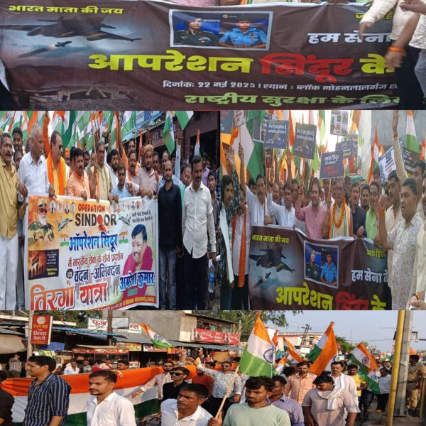 मोहनलालगंज : लखनऊ, भाजपाइयों ने कस्बा मोहनलालगंज में निकाला तिरंगा यात्रा, भारतीय सेना के शौर्य व ऑपरेशन सिंदूर की सफलता के लिए निकाली गई कस्बा में विशाल तिरंगा यात्रा विशाल तिरंगा यात्रा में पूर्व केंद्रीय राज्यमंत्री कौशल किशोर और विधानसभा क्षेत्र मोहनलालगंज से विधायक अमरेश रावत व प्रधान संघ अध्यक्ष देवेंद्र सिंह, भाजपा नेता नागेश्वर दिवेदी, प्रधान अभय दीक्षित, जिला सहकारी बैंक के जिला अध्यक्ष वीरेंद्र प्रताप सिंह, प्रधान मस्तीपुर सूर्य कुमार दिवेदी, जिला पंचायत सदस्य अमरेंद्र भारद्वाज समेत सैकड़ो की संख्या में भाजपा नेता और कार्यकर्ता विशाल तिरंगा यात्रा में हुए शामिल भारत को मिली सफलता के लिए भारतीय सेना के शौर्य व ऑपरेशन सिंदूर के हौशला बढ़ाने के लिए निकाली गई कस्बा में विशाल तिरंगा यात्रा में स्थानीय लोगों सहित महिलाएं भी हुई शामिल।