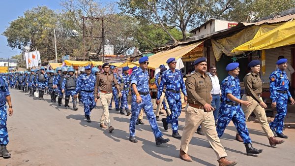धार जिले में आगामी बसंत पंचमी 23 जनवरी, शुक्रवार एवं जुमे की नमाज एक ही दिन होने के कारण पुलिस-प्रशासन पूरी तरह अलर्ट है। इसी क्रम में मंगलवार दोपहर नालछा में रैपिड एक्शन फोर्स के 200 से अधिक जवानों ने नालछा पुलिस के साथ संयुक्त रूप से फ्लैग मार्च किया। फ्लैग मार्च का उद्देश्य रैपिड एक्शन फोर्स को क्षेत्र की भौगोलिक स्थिति से अवगत कराना, एरिया डोमिनेशन करना तथा शांति एवं कानून-व्यवस्था को सुदृढ़ बनाए रखना रहा। फ्लैग मार्च के माध्यम से आमजन को सुरक्षा का संदेश दिया गया तथा असामाजिक तत्वों को सख्त चेतावनी दी गई।