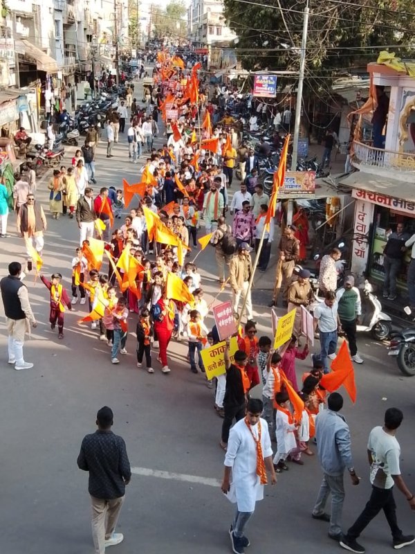 धार : नालछानाचेंगे गाएंगे ठुमके लगाएगे हंसते गाते माताजी को भोजशाला लाएंगे महाराज भोज स्मृति बसंतोत्सव समिति एवं सर्व हिंदू समाज के आह्वान पर बसंत पंचमी के अवसर पर भोजशाला में मां वाग्देवी की पूजा अर्चना आरती पूरे दिन हिंदू समाज निर्विघ्न संपन्न कर सके इसके लिए आज धार शहर में १8 जनवरी रविवार बाल मनूहार यात्रा निकाली यात्रा ने प्रमुख मार्गो से भ्रमण किया।स्थान लालबाग परिसर घोड़ा चौपाटी से नगर के प्रमुख मार्गो से होते हुए ज्योति मंदिर पर समापन हुआयात्रा के माध्यम सेनन्हे मुन्ने बच्चों के हाथों में नारे लिखे पोस्टर एवं वाद्य ढोल डमरू थाली चम्मच झांझ के माध्यम से धार नगर की धर्म प्रेमी जनता को संदेश दिया