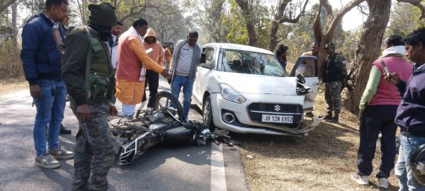 सेवती डाक बंगला के पास तेज रफ्तार बाइक गलत साइड जाकर कार से टकरायी, चालक की हालत चिंताजनक