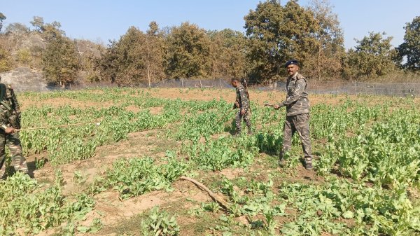 अवैध अफीम की खेती के विरुद्ध बड़ी कार्रवाई, लगभग 09 एकड़ में लगी फसल विनष्ट