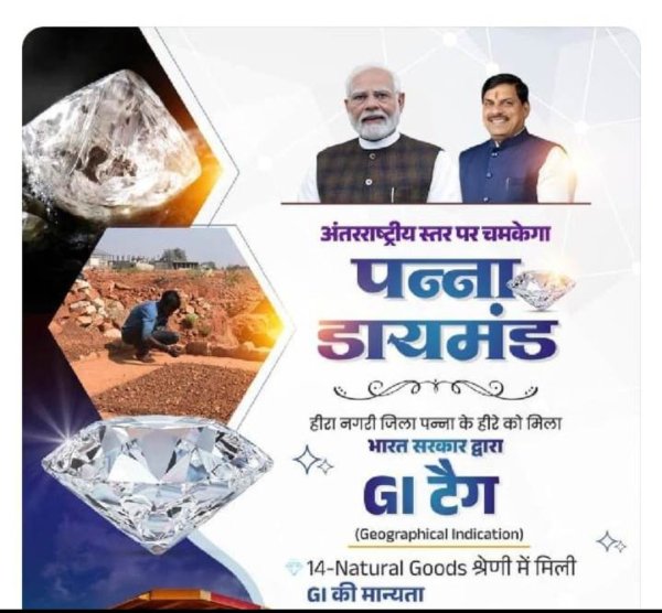 पन्ना : मुख्यमंत्री डॉ. मोहन यादव ने कहा है कि हीरा नगरी पन्ना जिले के हीरे को भारत सरकार द्वारा जीआई (ज्योग्रोफिकल इंडिकेशन) टैग मिलना सम्पूर्ण मध्यप्रदेश के लिए गौरव का विषय है। इससे पन्ना डायमंड अंतर्राष्ट्रीय स्तर पर चमकेगा और पन्ना के युवाओं तथा कारीगरों को स्थानीय स्तर पर नए अवसर मिलेंगे। पन्ना जिले के हीरे सर्टिफाइड और प्रीमियम प्राकृतिक उत्पाद के रूप में विश्व बाजार में उपलब्ध होंगे और पन्ना के इन प्राकृतिक हीरों को ही पन्ना डायमंड के नाम से बेचा जा सकेगा। इससे स्थानीय अर्थव्यवस्था को नई ऊर्जा मिलेगी।