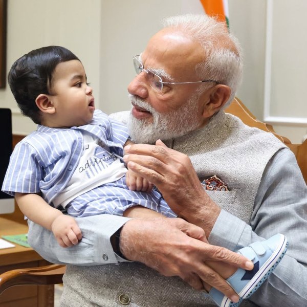 यह तस्वीर दिखाती है कि ऊंचे पद और जिम्मेदारियों के बावजूद, एक इंसान के भीतर की सादगी और बच्चों के प्रति अपनापन हमेशा जीवित रहता है। तस्वीर में पीएम मोदी अपनी कुर्सी पर बैठे नजर आ रहे हैं, जबकि एक छोटा बच्चा उनकी गोद में खेलता हुआ दिख रहा है। बच्चे के चेहरे पर मासूम मुस्कान और बेफिक्री साफ झलक रही है, वहीं पीएम मोदी के चेहरे पर भी सुकून और स्नेह भरी मुस्कान दिखाई दे रही है।