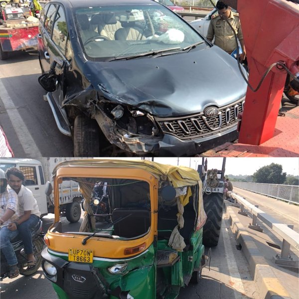 नैनी पुल पर दर्दनाक हादसा: कार ने पिता-बच्चों को कुचला, ऑटो को भी मारी टक्कर