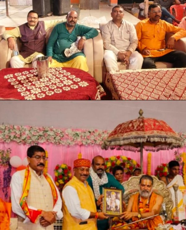 प्रयागराज - नैनी जमुनापार के प्रमुख समाजसेवी उद्योगपति अजय मिश्रा पीलू मिश्रा के सानिध्य में निज निवास नंदन तालाब अरैल में संगीतमय श्रीमद् भागवत महापुराण कथा का सातवा दिन रुक्मणी विवाह से संपन्न हुआ श्रीमद् भागवत कथा में अरैल पार्षद प्रदीप महरा सरिता देवी एवं पत्रकार विकास कॉउंसिल भारत के राष्ट्रीय महासचिव एवं सी न्यूज़ भारत के स्टेट हेड डीके मिश्र. सत्यम शुक्ल बीजेपी नेता.शुक्ला आयरन.अंकित विद्या निकेतन इंटर कॉलेज के प्रबंधक अनिल मिश्र.पूर्व प्रधान शिव शंकर दीक्षित. मुरली निषाद.कॉउंसिल के प्रदेश अध्यक्ष महिला बिंग बबिता शर्मा. नीलम मिश्रा.बृजेश मिश्र.शैलेंद्र शर्मा.उपस्थित रहे। आपको बताते चले कि यह भागवत कथा 27 अक्टूबर सोमवार से कथा प्रारंभ होकर 2 नवम्बर तक चलेगी और 3 नवम्बर को भव्य भण्डारे का आयोजन किया गया है। जिसमे कथा व्यास जगतगुरु रामानुजाचार्य श्री स्वामी अच्युत प्रपन्नाचार्य जी महाराज एवं मुख्य यजमान श्रीमती कुसुम मिश्रा श्रीमती राजदुलारी मिश्रा. गुरु महाराज रामचरित पांडेय. स्मृतिशेष शालिग्राम मिश्र कार्यक्रम आयोजक आधुनिक भवन श्री रामनगर चौराहा कमलेश मिश्रा द्वारा आयोजित किया गया।
