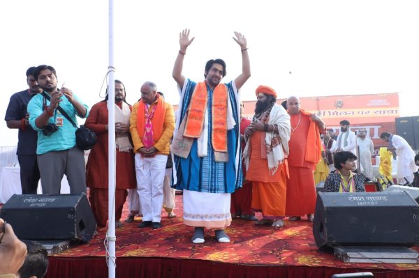 प्रयागराज : छठे दिवस सनातन एकता पदयात्रा 2.0 में पूज्य सरकार ने सभी साधु-संतों का पदयात्रा का स्मृति चित्र और पट्टिका से सम्मान किया आशीर्वचन सामूहिक अर्जी और ध्वजारोहण राष्ट्रगान के उपरांत छठवें दिवस की सनातन हिंदू एकता पदयात्रा प्रारंभ हुई। साधु-संतों ने मंच से हिंदू राष्ट्र की पदयात्रियों में जोश भरी अपनी ओजस्वी वाणी से सभी संत महंतों ने महाराज श्री के संकल्प भारत हिंदू राष्ट्र के लिए समर्थन किया और पदयात्रा पर महाराज जी के साथ चले।