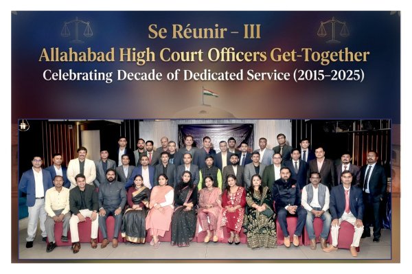 प्रयागराज - उच्च न्यायालय में 10 वर्ष की सेवा पूर्ण करने के अवसर पर 2015 बैच के अधिकारीगण द्वारा रविवार दिनांक 07 दिसंबर को "से रियूनियर-3" कार्यक्रम आयोजित किया गया। कार्यक्रम के दौरान गवेंद्र सिंह ने कविता पाठ तथा सचीन्द्र नाथ ने गीत प्रस्तुत किया। कार्यक्रम का संचालन अतुल गौड़ तथा अर्चना पांडे ने किया। इस अवसर पर उच्च न्यायालय अधिकारियों में कुलदीप सिंह,गरिमा पांडे,अनामिका,ऋषिकेश,विक्रांत,पंकज,नरेंद्र,इमरान,रविन्द्र,देवेश आदि मौजूद रहे।