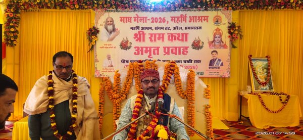 प्रयागराज : नैनी प्रयागराज महर्षि महेश योगी आश्रम परिसर अरैल नैनी में महर्षि आश्रम के अध्यक्ष वेद विद्या मार्तंड ब्रह्मचारी गिरी जी के निर्देशन में 15 फरवरी तक कार्यक्रम चलता रहेगा,राम कथा के राजा दशरथ के तीन वचन चित्रकूट जाना राजा दशरथ जी का स्वर्गवास का कथा वाचक श्री भूपेंद्र जी महाराज ने का वर्णन किया आश्रम प्रभारी सुनील श्रीवास्तव ने कथा वाचक भूपेंद्र जी का माल्यार्पण कर भगवान की आरती उतार कर गुरु पूजन कर कार्यक्रम को प्रारंभ किया इस अवसर पर प्रभारी आश्रम प्रभारी सुनील श्रीवास्तव प्रभारी बसंत दास धर्मेंद्र श्रीवास्तव समाधि स्थल प्रभारी,ऋषि त्रिवेदी विमल मिश्रा सोनू पांडे जयप्रकाश तिवारी राजा भैया द्वारिका प्रसाद तिवारी प्रशांत दास पंकज शर्मा अनिल शर्मा लाल जी पांडे पवन पाठक मीडिया प्रभारी संजय श्रीवास्तव उपस्थित रहे।