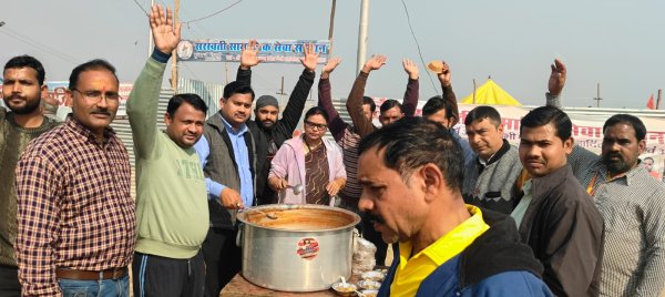 प्रयागराज - अध्यात्मिक चेतना के महापर्व मौनी अमावस्या पर सरस्वती सामाजिक सेवा संस्थान अरैल नैनी प्रयागराज द्वारा सेक्टर नंबर -7,अरैल स्थित संकटमोचन मार्ग पर माघ मेला सरस्वती शिविर में भव्य दमालू का भंडारा किया गया। कार्यक्रम में सर्वश्री कुंवर जी तिवारी,सुनील मिश्रा,धीरज यादव,सहदेव चौरसिया, सुनील कुशवाहा,एडवोकेट आत्म प्रकाश यादव,संदीप केसरवानी,डां.एस.बी.यादव, ज्ञान प्रकाश मिश्रा,विकास मिश्रा,ओमप्रकाश श्रीवास्तव, महिला साथी श्रीमती नम्रता श्रीवास्तव, विनोद गुरानी,बबरूवाहन सिंह,धीरज रजवानी,शशिकांत पांडेय,इन्दु प्रकाश सिंह,प्रियांशु उपाध्याय,दीपक दीक्षित,राजित राम शर्मा, सुनील पाण्डेय,राजू पाण्डेय,अनुपम पाण्डेय,तुलसी तिवारी आदि उपस्थित रहे।