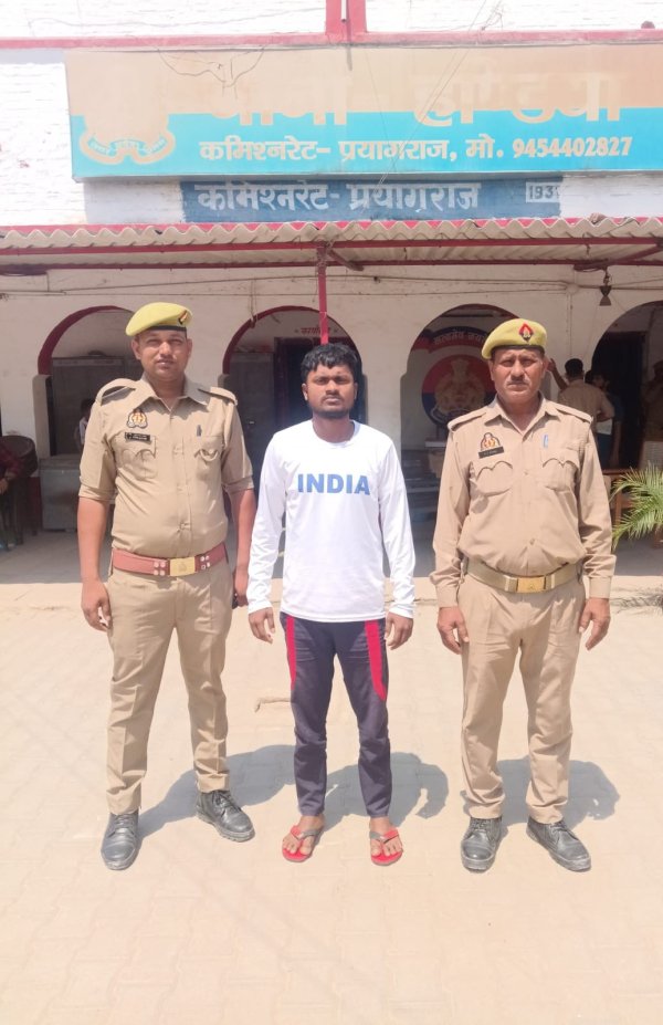 प्रयागराज : पुलिस आयुक्त व अपर पुलिस आयुक्त के निर्देशन में अपराध एवं अपराधियों के विरुद्ध चलाये जा रहे अभियान के क्रम में श्रीमान् पुलिस उपायुक्त गंगानगर व अपर पुलिस उपायुक्त गंगानगर के कुशल पर्यवेक्षण में व सहायक पुलिस आयुक्त हण्डिया के कुशल नेतृत्व में गंगानगर-जोन के थाना हण्डिया पर पंजीकृत मु0अ0सं0-138/26 धारा-65(1)/352/351(2) भा0न्या0सं0 व 3/4 पॉक्सो एक्ट से सम्बन्धित 01 वांछित अभियुक्त सागर गौतम पुत्र स्व0 रविन्द्र उर्फ पप्पू निवासी ग्राम पूरे मथूरादास थाना हण्डिया कमिश्नरेट प्रयागराज को थाना हण्डिया पुलिस टीम द्वारा आज दिनांक-07.04.2025 को थाना हण्डिया क्षेत्रान्तर्गत ग्राम बासुपुर स्थित शिव मंदिर तालाब के पास से गिरफ्तार किया गया ।