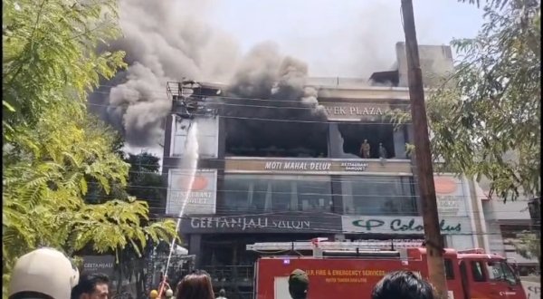 लखनऊ : आशियाना के पावर हाउस चौराहे के पास स्थित विवेक प्लाजा के तीसरे तल पर संचालित मोती महल डीलक्स रेस्टोरेंट में बुधवार सुबह करीब 10:30 बजे भीषण आग लग गई और काले धुएं के गुब्बार फ्लोर से फैलने आग। इस दौरान एसी का कंप्रेशर भी फटने से तेज धमाका हुआ। जिससे पूरे इलाके में हड़कंप मच गया।