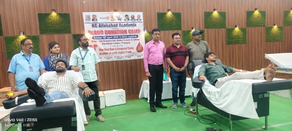 प्रयागराज : रोटरी क्लब ऐकेडमीया व नाज़ ब्लड बैंक के संयुक्त तत्वाधान में करैला बाग़ स्थित बेनहर स्कूल एण्ड कालेज के जाहिदा ऑडीटोरियम में ब्लड इज़ लाइफ पास इट ऑन की थीम पर सैंतिस लोगों ने रक्तदान के महत्व को चरितार्थ किया।डोनर के उत्साहवर्धन को रोटेरियन तारिक़ खान,डॉ सैय्यद नाज़िम अहमद, डॉ नाज़ फात्मा, डॉ विश्वदीप केसरवानी,डॉ निहारीका केसरवानी डॉ आरिज़ क़ादरी,डॉ आशुतोष अग्रवाल, रिज़वान खान,असरा नवाज़,आफताब अहमद,अकबर खान,अहमद उल्ला आदि मौजूद रहे।रोटरी क्लब ऐकेडमीया व नाज़ ब्लड बैंक करैली की ओर से सभी ब्लड डोनर को गुलाब का फूल,मोमेंटो व सर्टिफिकेट देकर सम्मानित भी किया गया।वहीं रक्तदान के महत्व को भी बताया गया।