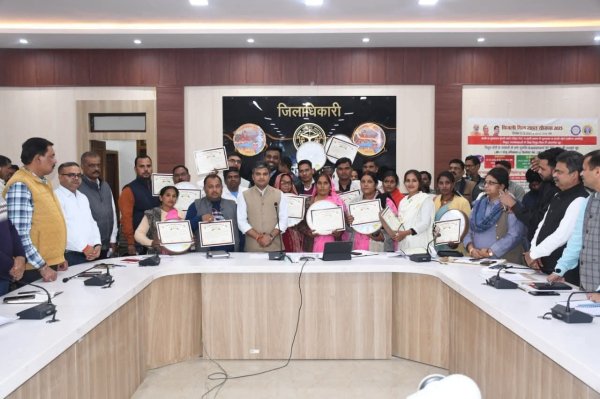 प्रयागराज : जिलाधिकारी मनीष कुमार वर्मा द्वारा कलेक्ट्रेट स्थिति संगम सभागार में दिनांक 26.11.2025 को विशेष प्रगाढ़ पुनरीक्षण, 2026 में जनपद के 19 बीएलओ द्वारा 100 प्रतिशत निर्वाचकों गणना प्रपत्रों के डिजिटाईजेशन का कार्य पूर्ण करते हुए अच्छा कार्य किये जाने पर उन्हे प्रशस्ति पत्र एवं घड़ी देकर सम्मानित किया गया, उत्कृष्ट बी0एल0ओ0 सम्मान पाने वाले बीएओ का विवरण निम्नवत् है- 265 कोरांवप्रभा देवी, आंगनबाड़ी, आराध्या सिंह, आंगनबाड़ी, जयलाल सिंह सहायक अध्यापक, अवधेश कुमार सहायक अध्यापक, गुलवासी देवी आंगनबाड़ी, तारापति शिक्षा मित्र, केशरी प्रसाद शिक्षा मित्र, विमला देवी आंगनबाड़ी,