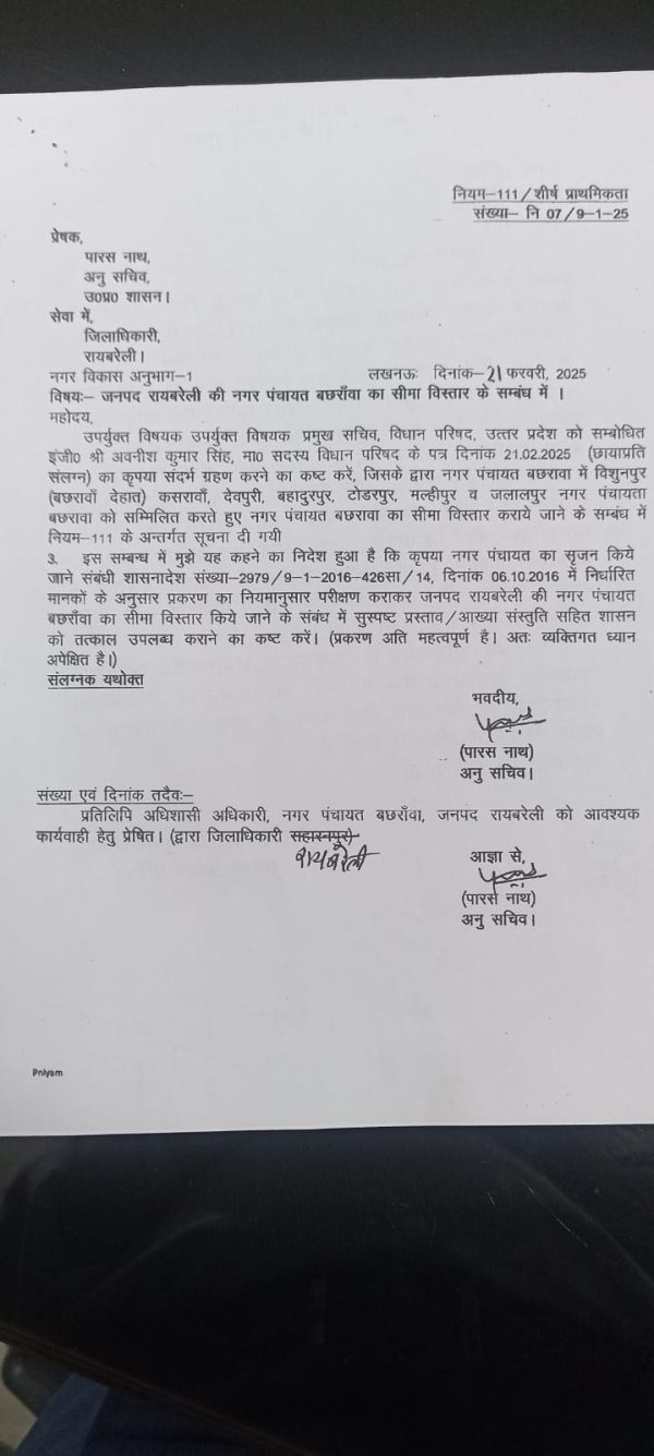 नगर पंचायत बछरावां सीमा विस्तार की पत्रावली ने पकड़ी रफ्तार