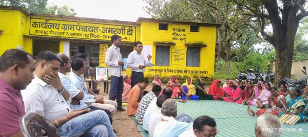 धरमजयगढ : बिकासखंड के ग्राम पंचायत ज़मारगी डी में आदि कर्मयोगी योजना के तहत बैठक आहूत की गई जहां बड़ी संख्या में ग्रामीण जन उपस्थित रहे, ग्राम सभा में ग्राम सचिव- सुरेश मेहर ने ग्रामीणों को विस्तार पूर्वक बताते हुए आदि कर्मयोगी द्वारा संचालित योजनाओं का मुख्य उद्देश्य ग्राम विकास कर समृद्ध ग्राम बनाना है। योजनाओं के तहत शिक्षा, स्वास्थ्य, स्वावलंबन, रोज़गार तथा बुनियादी सुविधाओं पर विशेष ध्यान दिया जाएगा।