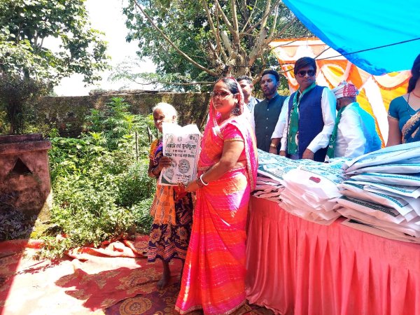 रांची - झारखंड मुक्ति मोर्चा नगडी का बैनर तले विनोद तिर्की एवम इनकी सहयोगी के द्वारा दो सौ पचास महिलाओ के बीच साडी का वितरण किया गया। कार्यक्रम की स्थान कतरपा जरा टोली,के राखी देवी,का निजि आवास मे संपन्न हुआ। इस कार्यक्रम की अध्यक्षता विनोद तिर्की और संचालन लक्ष्मण राम ने किया। नवरात्रि एवम दुर्गा पुजा के शुभ अवसर पर हर वर्ष की भाती इस वर्ष भी 17 वी साडी का वितरण किया गया। सबसे पहले दिशूम गुरु शिबू सोरेन जी का चित्र पर फुल माला चढ़ाकर सभी ने नमन किया। इस कार्यक्रम मे आई महिलाऐ को श्रीमति रेनू देवी के द्वारा विधवा महिला को साडी देकर शुभारंभ किया। इस कार्यक्रम मे आऐ गांव टोला की पता- हरि,पलाडू,डुमरटोली,कुम्बा टोली,जरा टोली,कतरपा,छोटा खुटा आदि गांव की महिलाऐ शामिल थी। इस कार्यक्रम मे मुख्य रूप से मौजूद विनोद तिर्की राखी देवी,राजेंद्र महतो,तस्लीम अंसारी,लक्ष्मण राम, रेयाजुल अंसारी,रंजन हेमरोम,खादी उरांव, सोहराई उरांव,अजय कच्छप,पुरुषोत्तम सिंह,प्रमीला देवी,उर्मिला देवी, पुजा देवी,सोमारी उरांव देवी,नीलम कचछप,ज्योति देवी आदि महिलाऐ मौजूद थी.