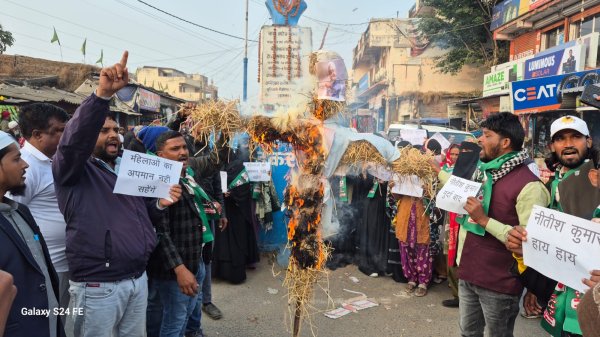 रांची : महिला सम्मान एवं संविधान प्रदत्त अधिकारों की रक्षा को लेकर रविवार को अम्बेडकर चौक, पिठोरिया में AIMIM झारखंड के नेतृत्व में शांतिपूर्ण पुतला दहन कार्यक्रम का आयोजन किया गया। यह कार्यक्रम बिहार के मुख्यमंत्री नीतीश कुमार के विरोध में आयोजित किया गया, जो अपराह्न 3:30 बजे प्रारंभ हुआ और पूरी तरह शांतिपूर्ण, लोकतांत्रिक एवं अनुशासित वातावरण में संपन्न हुआ।