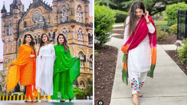 आजकल इस तरह के सूट डिज़ाइन्स काफी ट्रेंड में हैं, जिन्हें आप बड़े ही कॉन्फिडेंस के साथ गणतंत्र दिवस पर पहन सकती हैं। हल्की-फुल्की ज्वेलरी, सटल मेकअप और मैचिंग फुटवियर के साथ इसे स्टाइल करें और अपने पूरे लुक को दें एक एलिगेंट और ग्रेसफुल टच।