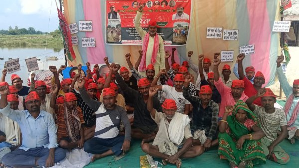 बौसड़वा गर्भे कलिया कोट मार्ग में पुल सड़क बनाए जाने सपा का अनिश्चितकालीन धरना जारी