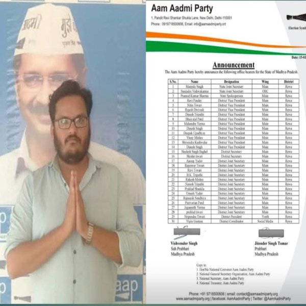 रीवा : खबर मध्यप्रदेश के रीवा जिले से है जहां सेमरिया विधानसभा क्षेत्र के लोकप्रिय युवा नेता शिशिर सिंह तिवारी को आम आदमी पार्टी रीवा इकाई का जिला सचिव बनाए जाने पर उनके द्वारा पार्टी हाईकमान का किया गया आभार व्यक्त।इस दौरान उन्होंने मीडिया से चर्चा कहा यह नियुक्ति प्रदेश प्रभारी व दिल्ली के पूर्व कानून मंत्री जितेंद्र सिंह तोमर,जितेंद्र चौरसिया,अमित सिंह,इंजीनियर दीपक सिंह, भक्तराज सिंह, प्रमोद शर्मा ,राजीव सिंह परिहार, रवि मिश्रा एवं शुभ्रांशु द्विवेदी की अनुशंसा पर की गई है । इस दौरान उन्होंने मीडिया के सवालों का जवाब देते हुए कहा कि पार्टी की नीति से लोगों को अवगत कराए जाने के लिए हरेक प्रयास उनके द्वारा किए जाएंगे साथ ही आम आदमी पार्टी के द्वारा दिल्ली व पंजाब राज्य में जनहित के किए गए कार्यों से भी लोगों को अवगत कराने का कार्य किया जाएगा।शिशिर सिंह तिवारी राज्यसभा सांसद संजय सिंह के रीवा जिले में अत्यंत करीबी माने जाते है। इस नियुक्ति को लेकर जिले में हर्ष व्याप्त है व उनके शुभचिंतकों द्वारा शुभकामनाएं संदेश प्रेषित करते हुए उनके उज्जवल भविष्य की कामना की गई।