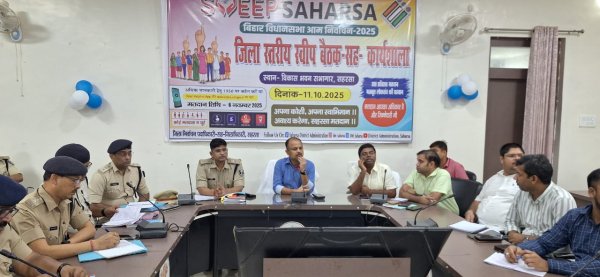 सहरसा : स्थानीय विकास भवन में जिला निर्वाचन पदाधिकारी सह जिलाधिकारी दीपेश कुमार एवं पुलिस अधीक्षक हिमांशु की संयुक्त अध्यक्षता में सभी प्रखण्ड विकासपदाधिकारी, अंचलाधिकारी,/सभी कार्यपालक पदाधिकारी नगर पंचायत नगर परिषद के साथ आयोजित बैठक में विधानसभा आम निर्वाचन:2025 के सुचारु संचालन एवं आसन्न पर्व त्योहार के अवसर पर विधि व्यवस्था के समुचित संधारण हेतु की गई तैयारियों के संबंध में विस्तृत समीक्षा की गई एवं उपयुक्त दिशा निर्देश दिए गए।बैठक में जिलांतर्गत मतदान केंद्रों पर पूर्व में दिए गए निदेश के आलोक में सुनिश्चित आवश्यक सुविधा के भौतिक सत्यापन अनुपालन की वर्तमान स्थिति,निर्वाचन निमित वाहन प्रबंधन प्रणाली, मतदान दिवस के अवसर पर अधिकाधिक मतदाता सहभागिता सुनिश्चित करने के लिए किए जा रहे प्रयासों आदि के संबंध में चर्चा की गई एवं प्रखंड क्षेत्रों में लक्ष्य केंद्रित मतदाता जागरूकता कार्यक्रमों के निर्बाध आयोजन का निर्देश दिया गया है।सभी संबंधित को निर्वाचन विषयक सभी कार्यों को ससमय निष्पादित करने का निर्देश दिया गया है।बैठक में अपर समाहर्ता निशांत सहित अन्य संबंधित उपस्थित थे।