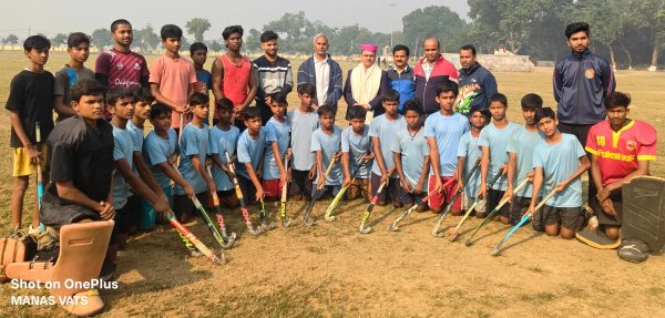 स्थानीय पटेल मैदान में हॉकी प्रैक्टिस मैच का उद्घाटन,कोच का हुआ भव्य स्वागत