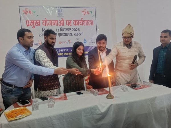 सहरसा : मेरा युवा भारत, सहरसा द्वारा कोअभिनव सेलिब्रेशन हॉल में एक दिवसीय कार्यशाला का सफल आयोजन किया गया। इस कार्यशाला में जिले के विभिन्न शिक्षण संस्थानों के छात्र-छात्राओं, युवा स्वयंसेवकों तथा कई सामाजिक कार्यकर्ताओं ने उत्साहपूर्वक भाग लिया।कार्यक्रम का संचालन मेरा भारत सहरसा के AO राजीव नंदन द्वारा किया गया। कार्यक्रम की शुरुआत मुख्य अतिथियों द्वारा दीप प्रज्वलन के साथ हुई। कार्यशाला में युवाओं को नेतृत्व क्षमता, सामाजिक जिम्मेदारियों, तकनीकी जागरूकता तथा सामुदायिक भागीदारी से जुड़ी महत्वपूर्ण जानकारियाँ दी गईं।इस अवसर पर उपस्थित प्रमुख अतिथियों में जिला उद्योग महाप्रबंधक मुकेश कुमार जिला सांस्कृतिक पदाधिकारी स्नेहा कुमारीमाय भारत चयन समिति के सदस्य ज्ञानू ज्ञानेश्वरउद्योग विस्तार पदाधिकारी नितेश कुमारसहरसा इंजीनियरिंग कॉलेज के सहायक प्राध्यापक अमन प्रासर युवा अधिवक्ता मोनू झा,मेरा युवा भारत स्वयंसेवक शिवशंकर दास (मन्नु रिस्की),मनीष चौपाल, टिंकू मैथिल,कृष्णकांत गुप्ता, शिवम कुमार, मायानंद सिंह, बेचन कुमार, बालेश्वर कुमार, गोविन्द कुमार, गुड़पीत कोर सेंटु कुमारी, मंकित कुमार, अक्षय और आयुष की सक्रिय उपस्थिति रही। कार्यशाला में कुल 50 से अधिक छात्र-छात्राओं को प्रशिक्षण दिया गया।मेरा युवा भारत के जिला टीम सदस्यों ने बताया कि इस प्रकार की कार्यशालाओं का उद्देश्य युवाओं को सशक्त बनाना और उन्हें समाज में सकारात्मक भूमिका निभाने के लिए प्रेरित करना है।कार्यक्रम के अंत में आयोजकों ने सभी प्रतिभागियों का आभार व्यक्त किया और भविष्य में भी ऐसे जनउन्मुख कार्यक्रमों के आयोजन की घोषणा की।