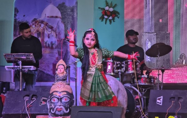 मिष्टी के मंच पर पहुंचते ही पंडाल तालियों की गूंज से भर उठा। दर्शकों ने उत्साहपूर्वक स्वागत करते हुए उसकी हौसला-अफजाई की। एकल प्रस्तुति में मिष्टी ने …ए गिरी नंदनी और …जय काली जय काली मां जैसी भक्तिमय धुनों पर मनमोहक नृत्य प्रस्तुत कर वातावरण को पूरी तरह भक्ति रस में रंग दिया। उसके भाव, लय और मंच पर आत्मविश्वास ने श्रोताओं को मंत्रमुग्ध कर दिया।कार्यक्रम में इंडियन आइडल फेम गायिका सौम्या मिश्रा के साथ मिष्टी की संगत विशेष आकर्षण का केंद्र रही। दोनों कलाकारों की जुगलबंदी ने मंच पर नई ऊर्जा भर दी। …बम बम बोल रहा है काशी सहित अन्य गीतों पर मिष्टी की सटीक संगत, अभिव्यक्ति और सहज नृत्य ने दर्शकों को झूमने पर मजबूर कर दिया। हर प्रस्तुति के बाद तालियों और जयकारों से पूरा परिसर गूंजता रहा।महोत्सव के समापन पर जिला कला संस्कृति पदाधिकारी स्नेहा झा और बनगांव थानाध्यक्ष पुनि हरिश्चंद्र ठाकुर ने मिष्टी को मोमेंटो देकर सम्मानित किया। अधिकारियों ने उसकी प्रतिभा की सराहना करते हुए उज्ज्वल भविष्य की कामना की।देवना में मिष्टी का यह पर्दापण दर्शकों के बीच लंबे समय तक चर्चा का विषय बना रहा। युवा कलाकार की सफलता ने स्थानीय प्रतिभाओं के लिए प्रेरणा का काम किया और बाणेश्वर महोत्सव की शाम को यादगार बना दिया।