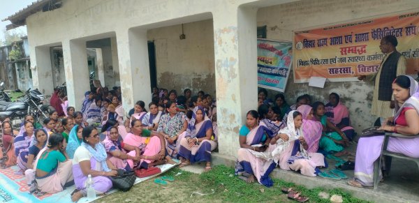 आशा कार्यकर्ताओं ने बकाया राशि भुगतान करने की मांग को लेकर एक दिवसीय धरना दिया