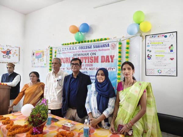 सहरसा : विश्व ऑटिज्म दिवस के अवसर पर सर्व नारायण सिंह रामकुमार सिंह महाविद्यालय सहरसा में बृहस्पतिवार को मनोविज्ञान विभाग और आइक्यूएसी के संयुक्त तत्वावधान में 'ऑटिज्म: एबिलिटी नॉट डिसेबिलिटी' विषय पर एकदिवसीय सेमिनार का आयोजन किया गया। सर्वप्रथम दीप प्रज्ज्वलन के साथ कार्यक्रम की विधिवत शुरुआत हुई।तत्पश्चात विद्या की देवी मां सरस्वती की प्रतिमा पर माल्यार्पण किया गया।उसके बाद छात्राओं ने सरस्वती वंदना का गायन किया।उद्घाटन सत्र में विषय प्रवर्तन करते हुए डॉ. निरपेन्द्र कुमार सिन्हा ने वर्ल्ड ऑटिज्म डे के बारे में विस्तार पूर्वक बताया।अतिथि वक्ता के तौर पर बोलते हुए डॉ. रविंद्र कुमार शर्मा ने ऑटिज्म के सकारात्मक पहलू के बारे में बताया।उन्होंने आइंस्टीन, न्यूटन, एलन मस्क और ग्रेटा थनवर्ग जैसे विश्व प्रसिद्ध व्यक्ति के बारे में बताया जो कि ऑटिज्म से ग्रसित थे।उन्होंने ऑटिज्म के मिथक और वास्तविकता के बारे में भी बताया।उन्होंने आगे कहा कि ऐसे बच्चे खुद को बदलना नहीं चाहते.वह एक ही काम को बार-बार करते हैं। अगर कोई बच्चा गाड़ी का चक्का घुमा रहा है तो वह बार-बार चक्का ही घुमाएगा।मां बाप को ऐसे बच्चों का सम्मान करना चाहिए।उसे स्वीकार करना चाहिए.ऐसे बच्चों के प्रति कारुणिक शब्दों का इस्तेमाल करना चाहिए तथा उसकी रुचि का सम्मान करना चाहिए।दूसरे अतिथि वक्ता डॉक्टर अबू सलाह ने ऑटिज्म से ग्रसित बच्चों के बारे में बताया कि ऐसे बच्चे किसी चीज पर खुद को गहराई से केंद्रित रखते हैं।डाटा एनालिसिस करने में ये माहिर होते हैं।ऐसे बच्चे ईमानदार तथा स्पष्टवादी होते हैं।उन्होंने आगे बताया कि ऑटिज्म वायरल या बैक्टीरियल डिजीज नहीं है।यह समस्या अनुवांशिक होती है या जन्म के समय नस के दबने से होती है।डॉ.अबू सालेह ने ऑटिज्म के लक्षण के बारे में विस्तारपूर्वक बताया।उन्होंने यह भी कहा ऐसे बच्चे दुनिया को अलग नजरिए से देखते है।आई क्यू ए सी के कोर्डिनेटर डॉ. सुभाष कुमार ने कहा कि ऐसे बच्चों के साथ भी सामान्य व्यवहार होना चाहिए।असामान्य व्यवहार करने से ऐसे बच्चे और आत्मकेंद्रित होते जाते हैं जो उनके स्वास्थ्य के लिए हानिकारक सिद्ध होता है। मनोविज्ञान विभाग की सहायक अध्यापिका डॉ रबाब फातिमा ने एक अच्छी कविता के माध्यम से ऑटिज्म की समस्या को प्रस्तुत किया।उन्होंने अपनी कविता में कहा कि तुम्हारी दुनिया हमसे अलग है, तुम बच्चे नहीं बल्कि एक खास किस्म के चमत्कार हो।अतिथियों के प्रति धन्यवाद ज्ञापन प्रधानाचार्य डॉ.अनंत कुमार सिंह ने किया।इस मौके पर उन्होंने ऑटिज्म और उसके आधुनिक परिप्रेक्ष्य पर बात की।दूसरे सत्र में छात्र-छात्राओं ने शोध -आलेख का पाठ किया। अर्पण कुमारी, संजीत कुमा